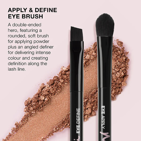 Der Mii Apply & Define Brush ist ein doppelseitiger Pinsel mit zwei Funktionen: Definieren und Verblenden von Augen- und Augenbrauen-Make-up. Perfekt für jeden Augenlook, professionelles Ergebnis.